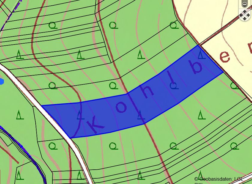 - ca. 1 ha davon nicht befahrbar mit jungem Fichtenbestand (20-50 Jahre) (Mitte des Flürstücks)