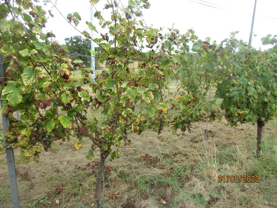 Hier am Kaiserstuhl ist alles im normalen Bereich, lediglich die extrem kompakten Klone zeigen teilweise durch abdrücken Botrytis oder Essig.