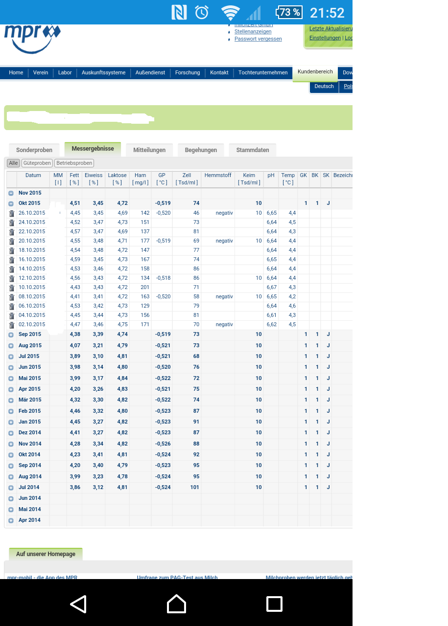 ??? Du siehst doch die Zellzahlergebnisse jeden zweiten Tag neu beim Milchpruefring auf der Homepage? oder schaust du da nicht nach?