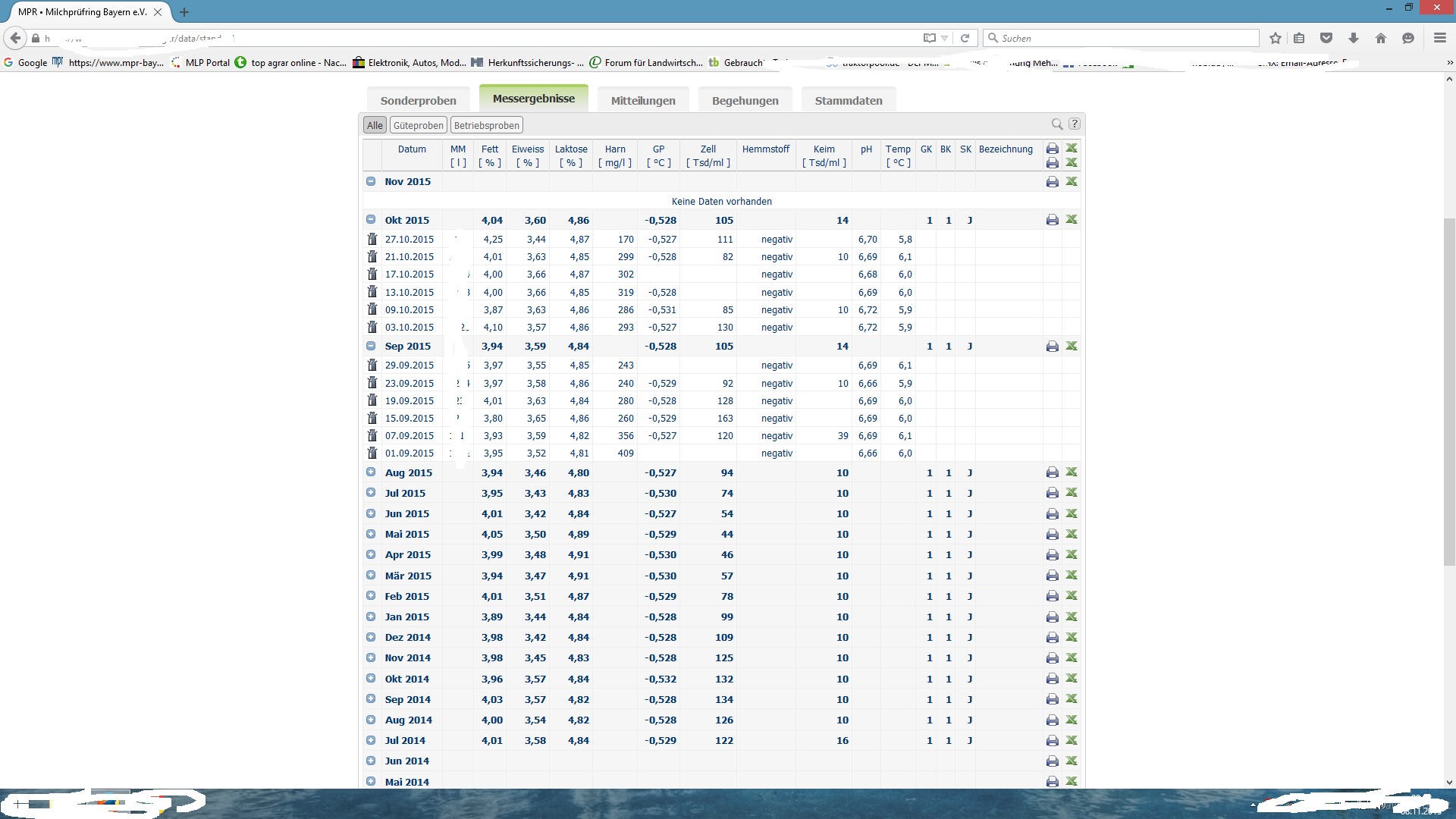 Zwar wird seit Januar täglich Inhaltsstoffe, Gefrierpunkt, Harnstoff untersucht aber die Anzahl der Zellgehalts- und Hemmstoffproben mit 4 und Keimproben mit 2 Untersuchungen ist gleich geblieben