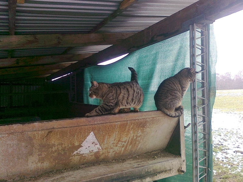 Und als Special noch meine Stallkatzen, damit die auch mal abgelichtet wurden. Die sitzen übrigends auf dem Miststreuer, den ich ebenfalls dieses Jahr gekauft habe. Das gehört aber nicht zu Forstarbeiten.