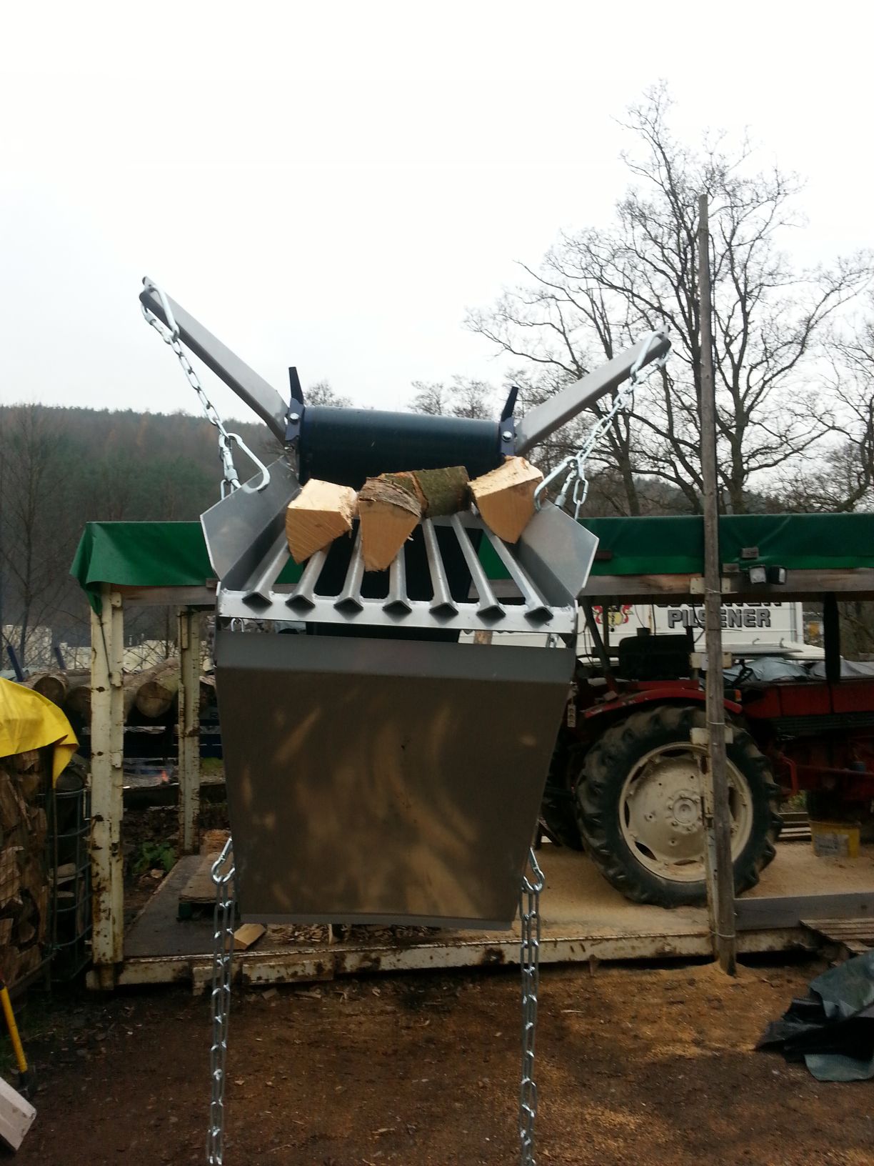 können die Scheite statt herauszufallen vorne an der Kante anstehen? Ich hätte mir da einen vorne offenen Rechen vorgestellt. Und welche Verbesserungen kannst Du Dir vorstellen?