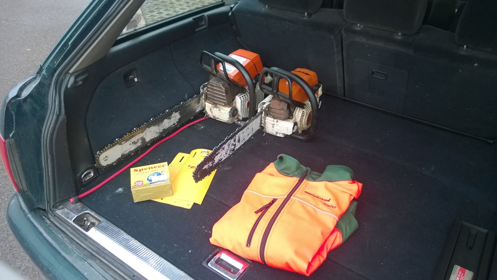 Natürlich gleich mal dem ganzen meine persönliche Note gegeben und die Motorsägenhalterung angebracht. Diese wartet jetzt schon seit einem Jahr auf einen geeigneten Platz