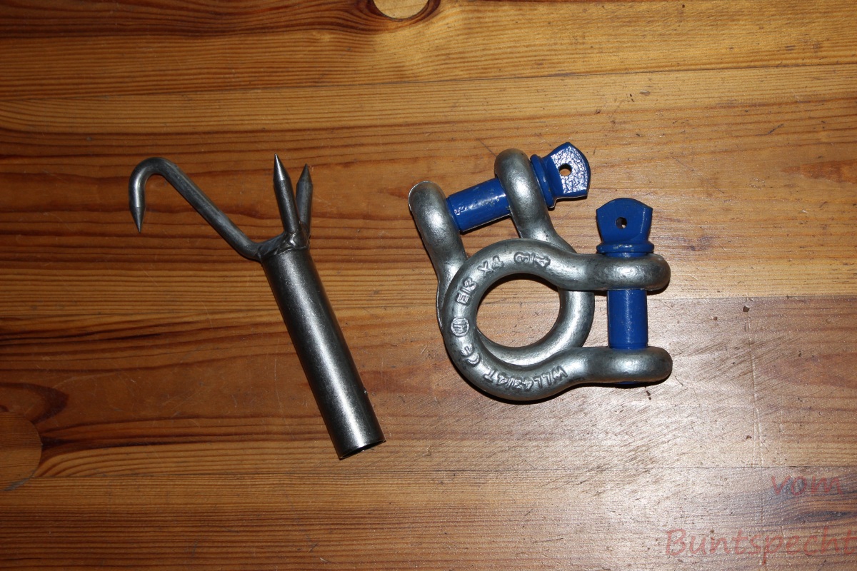) ein Kunststoffseil für den Wald. Die Schäkel, die ich bereits "auf Lager" hatte, waren doch ein wenig schwer, die Schubstange hingegen ein wenig leicht - sie hat es nicht lange ausgehalten.
