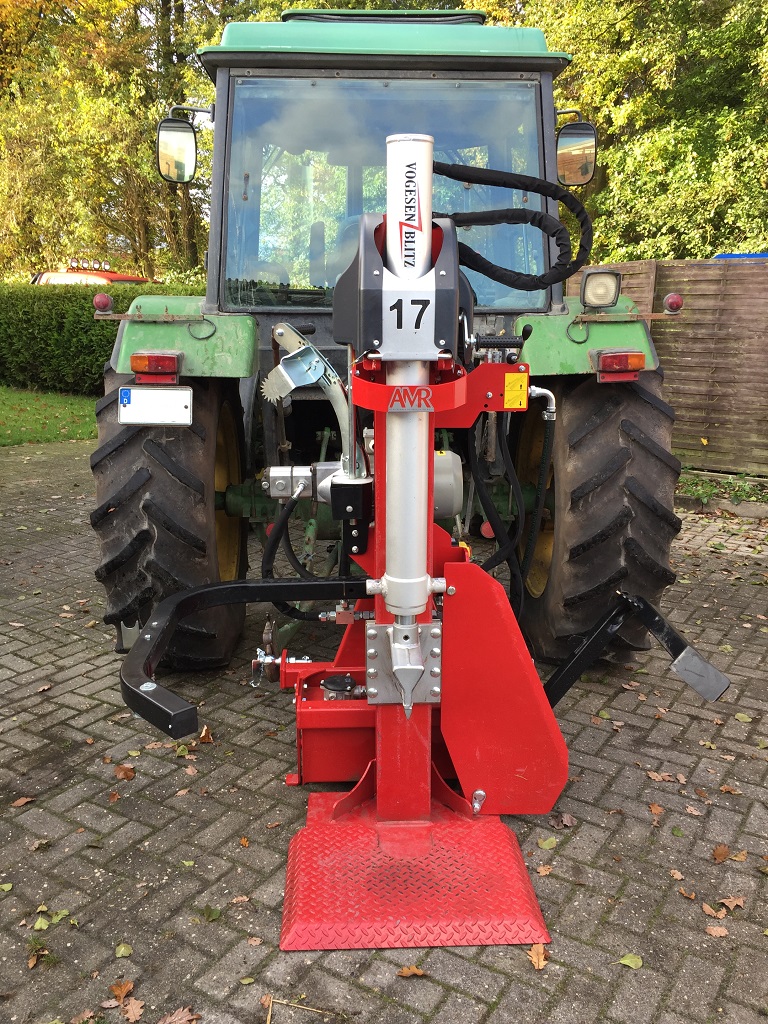 Und um mir die Arbeit mit dem Holz noch zu erleichtern, habe ich mir dann auch noch in der gleichen Woche einen Vogesenblitz VP17 mit E-Antrieb und Zapfwellenantrieb gekauft.