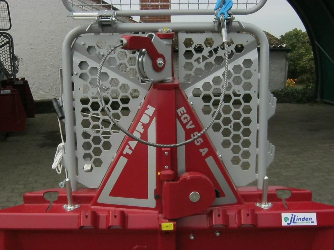 Um uns die Arbeit erleichtern, festgefahrenes Gerät rausziehen und insbesondere zum unterstützten Fällen hab ich mir eine Winde gegönnt. Es ist eine Tajfun EGV 55 A geworden und wird am JD 5100 gefahren.