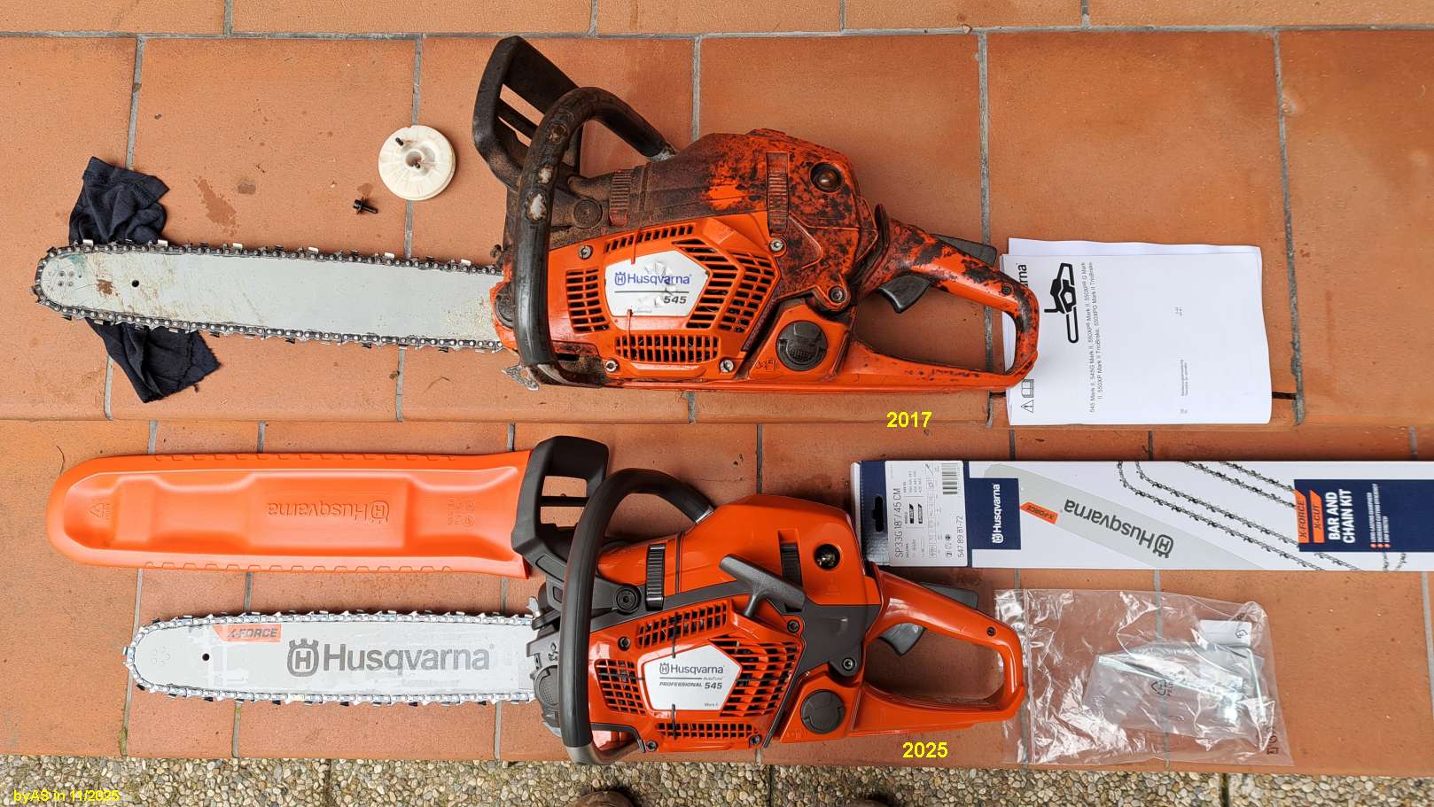 hab' ich mir heute kurzerhand eine neue 545 Mark II gekauft. Beim nächsten LaMa. Gibt da (wieder) so eine Herbstaktion mit Säge komplett + extra Schwert + 2 extra Ketten um knapp 750 €.