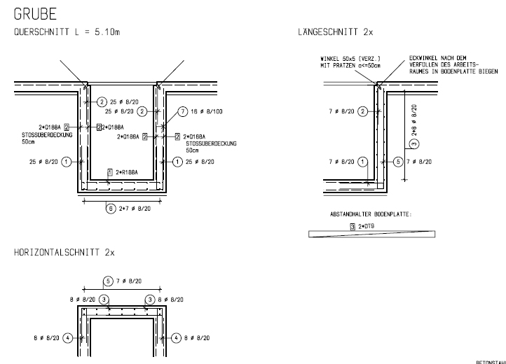 Nun stellt sich die Frage nach der Größe. Was habt Ihr gebaut? Wandstärken, Bodenstärke, Armierung, Abdichtung Bodenplatte gegen Wände, wie abdecken,.......