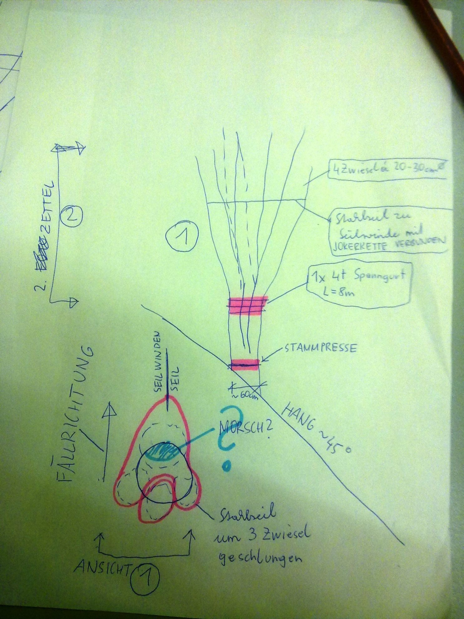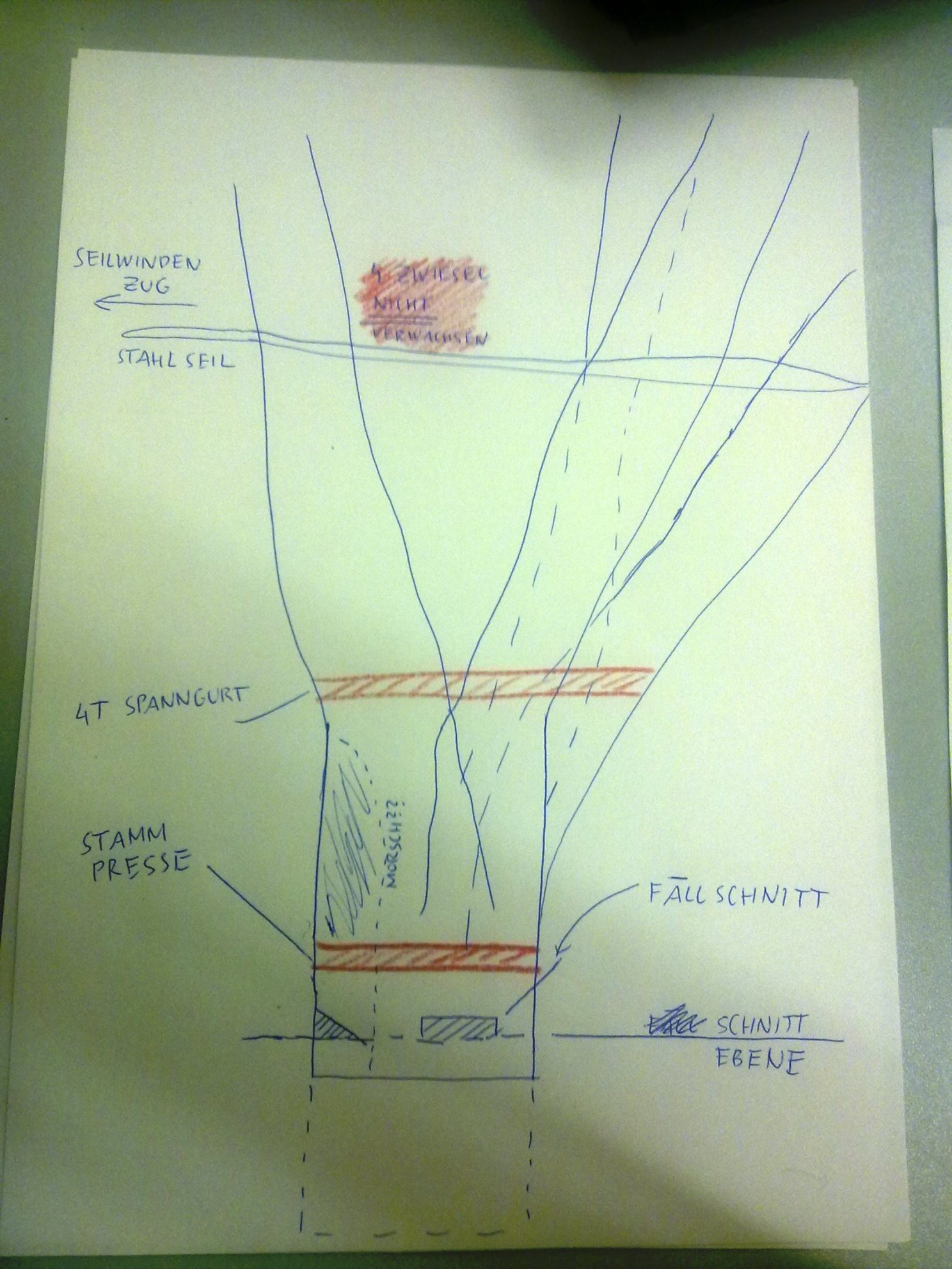 Mit 2,3 Spanngurten jeden Zwieselstamm einzeln umschlingen und dann zusätzlich noch die Winde ums ganze Zwiesel ?