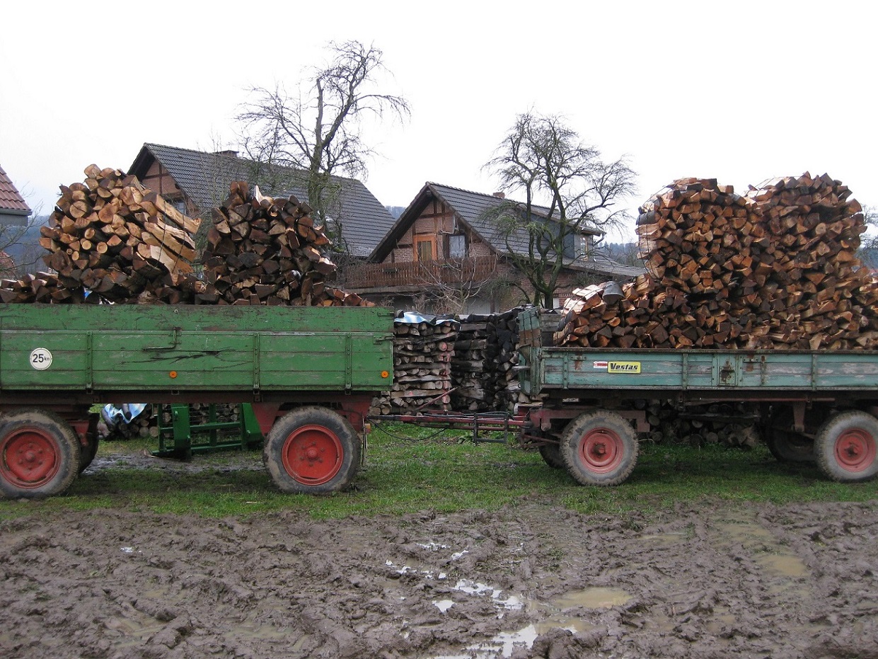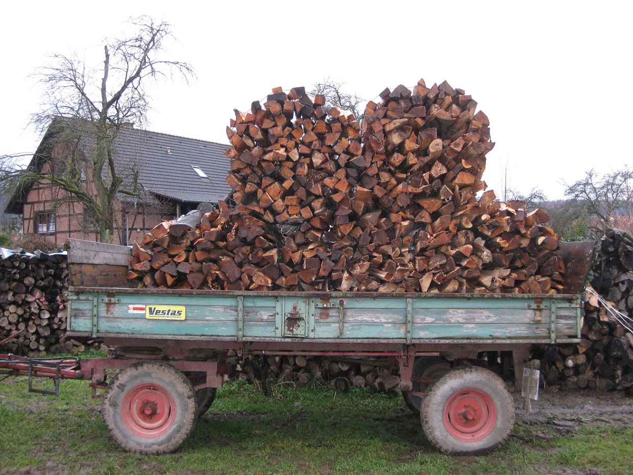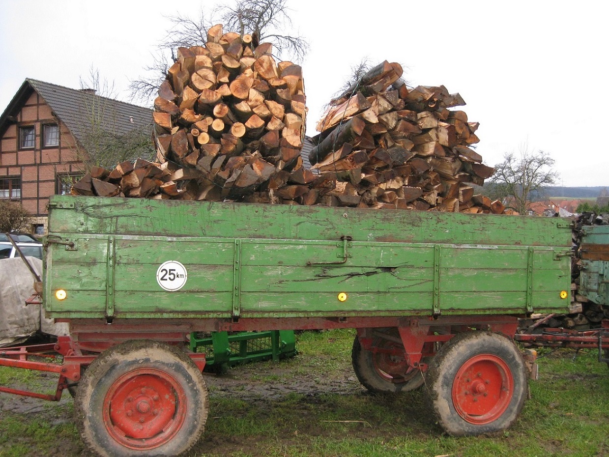 Mit Anhänger Nr. 2 (Hinten) haben wir angefangen gehabt.... Hat ewigkeiten gedauert, Das Holz ist andauert vom Spaltkreuz abgeglitten / gewichen und es sind bad mehr Hackschnitzel , also kleine Holzstücke geworden als Brennolz.