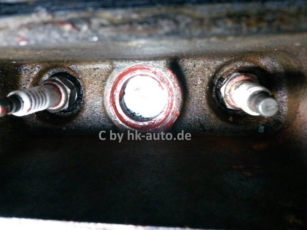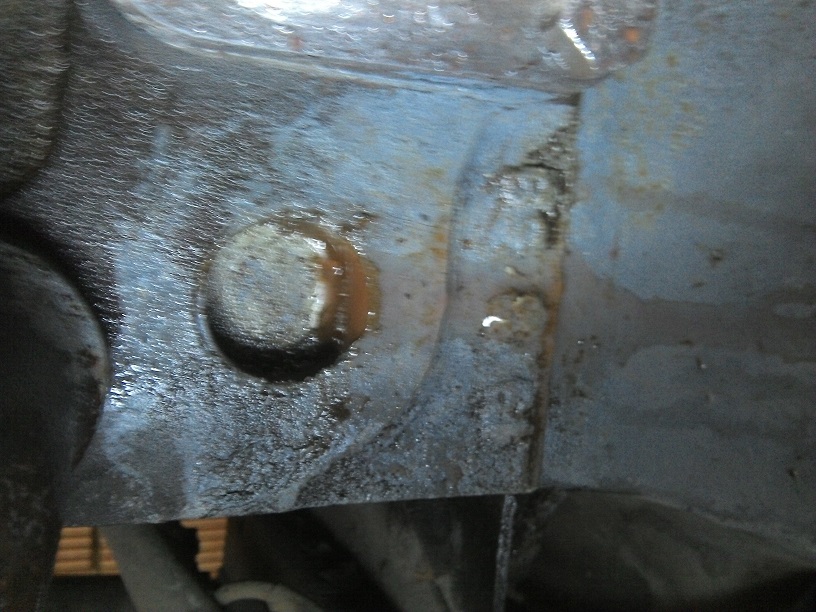 Ich hab ihn abgestellt und nachgeschaut. Auf dem Foto könnt ihrs sehen, da ist Kühlwasser hinausgeronnen. Ich hab dann das Kühlwasser abgelassen und geschaut. Ich konnte aber keinen Riss oder der Gleichen erkennen, wegen Frostschaden., nicht einmal ein kleines Loch.