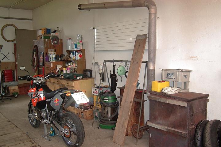hab grad ein Bild von unserem selbergebauten Werkstattofen gefunden...war im Sommer, wenn eingeheizt ist liegt da nichts drauf und dran (außer mal der Kochtopf *lol*)