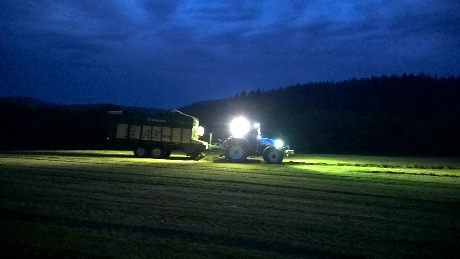 Ja, das war aus dem Schlepper heraus fotografiert. ;) Bei Bild eins war (wegen Bewegungsmelder) die Funzel unterm Anbau noch an. Bilder 2,3 und 4 sind dann aber Schlepper only. Die 2 LED AS am Schlepper haben mich zusammen 14 Euro plus Versand gekostet, stören das Radio nicht und ja, ich brauch das eigentlich maximal wenn die Strohbergung mal bis in die Nacht gehen sollte. :D ;)