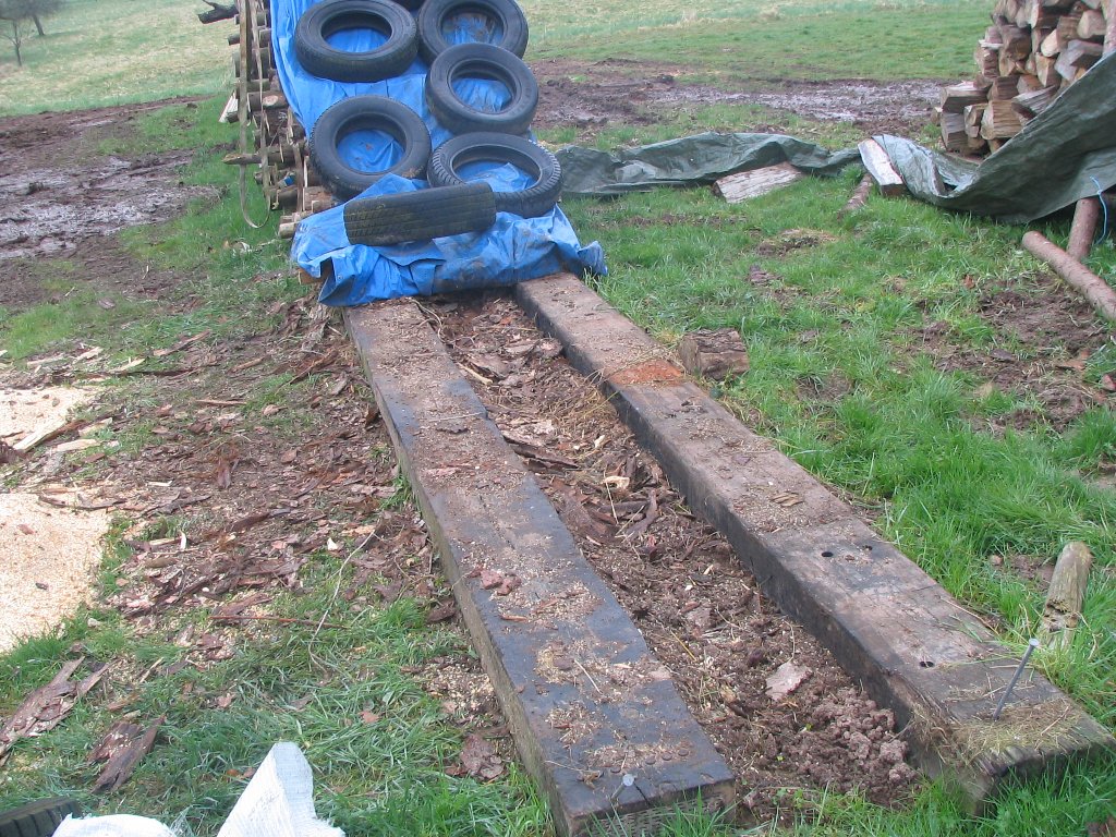 Also wir schneiden ca 1 m stücke und legen sie auf eisenbahnschwellen