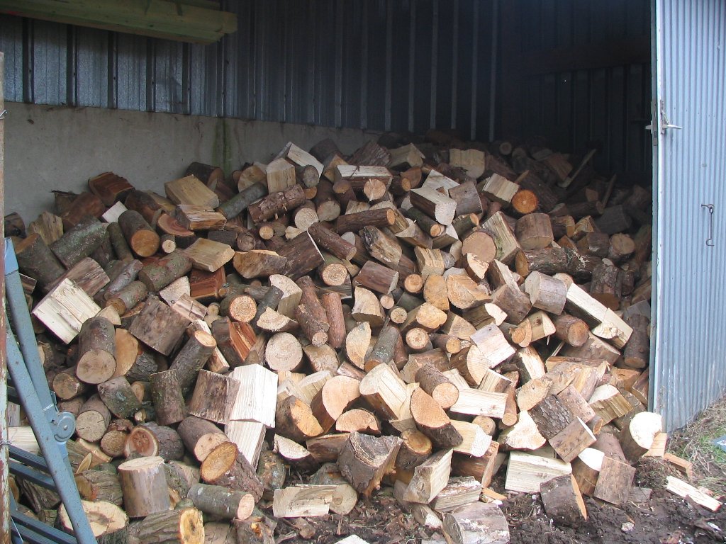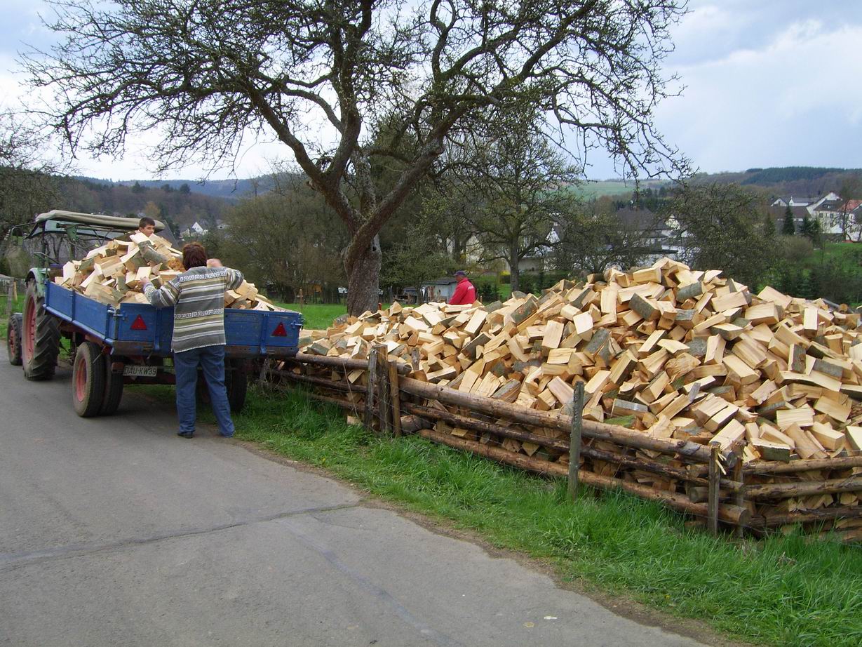 Dann in Ofenvertiges Holz und dann noch ein Jahr lagern unterm Dach .