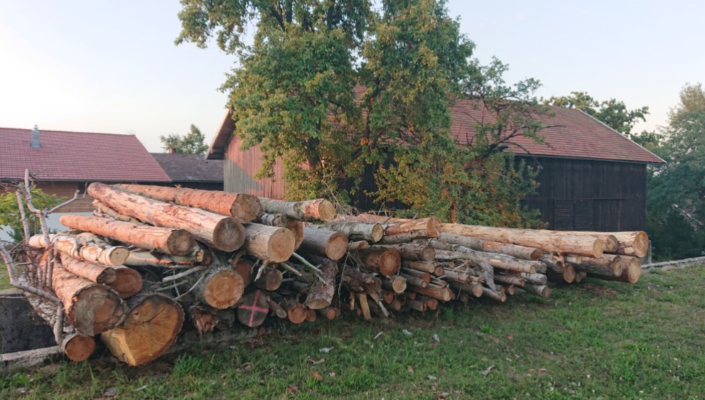 Mit Hartholz ,Weichholz viel Käferholz Fichte .Alles in der Landschaft nicht im Wald .
