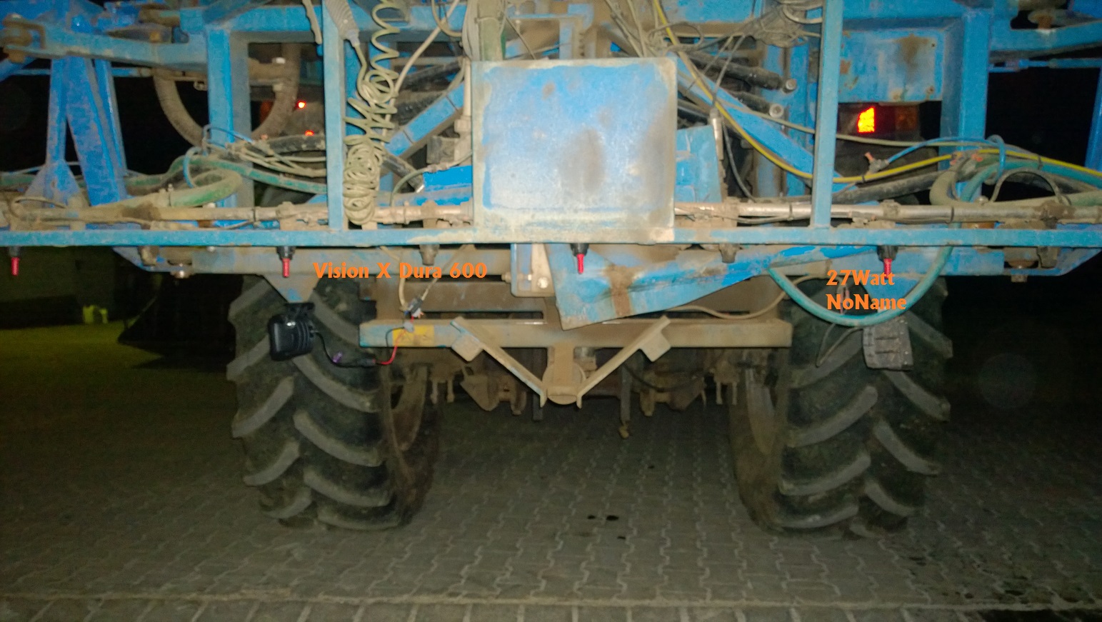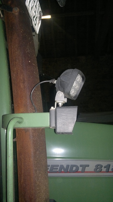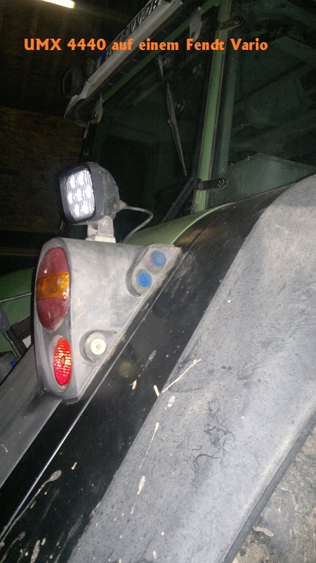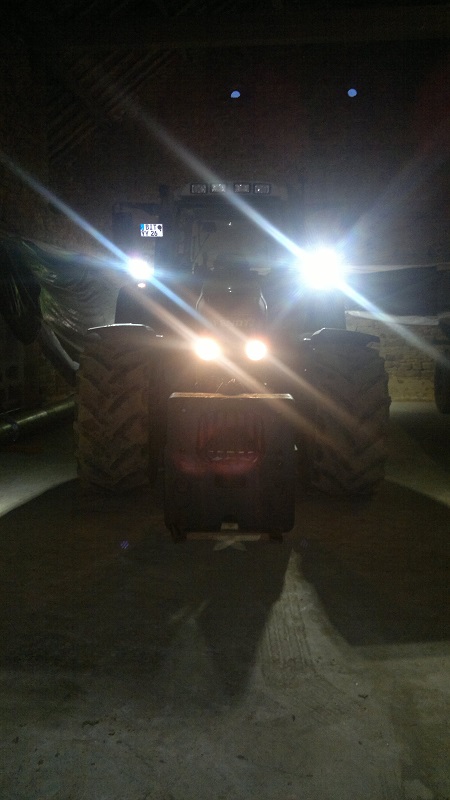 An den A-Säulen, das sind normalerweise die Ersatzhauptscheinwerfer, wenn die vorderen verdeckt sind. Dein Frontlader braucht auch nur auf 2.50m Höhe im Straßenverkehr.