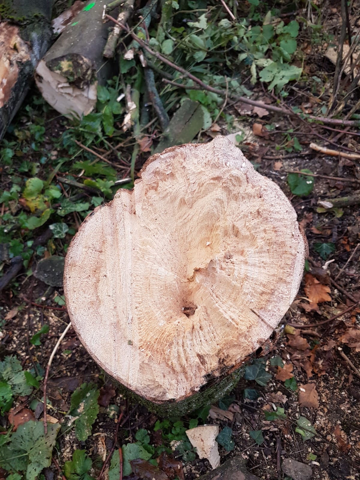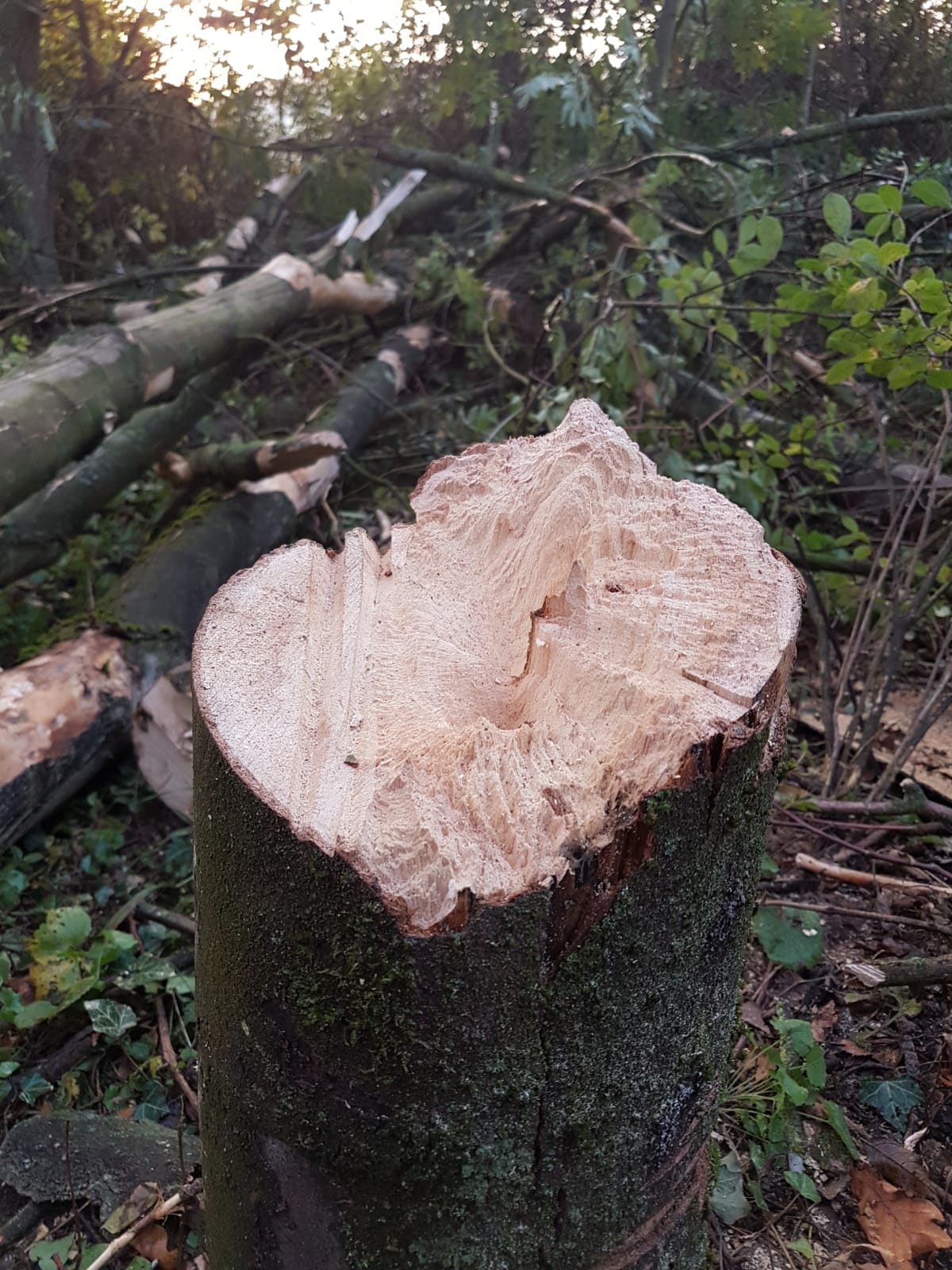 . Ich habe den Schnitt höher angesetzt weil, wie schon @beihei geschrieben hat, ich damit gerechnet hatte das der Baum nicht einfach wird und ich Platz brauche zum Ausweichen. Außerdem glaube ich das ich dieses Jahr mehr Rußrindenbäume gefällt habe wie du überhaupt schon gesehen hast