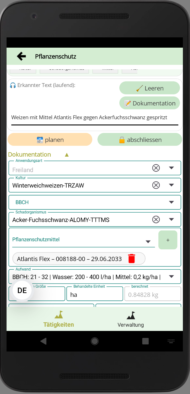 Aktuell ist die KI-Dokumentation erst für Bodenbearbeitung umgesetzt. Andere Tätigkeiten folgen noch. Die Pflanzenschutzdokumentation kann aber bereits manuell getestet werden.