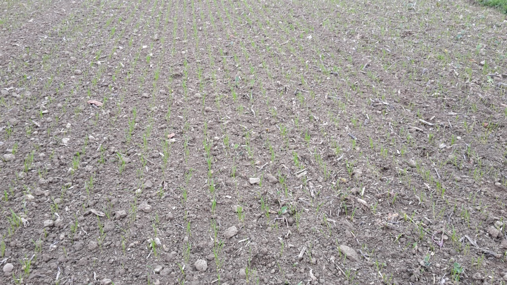 Aber weil ich Dich grade dran hab. Was sagst Du zu meiner Mulchsaat-Gerste? Ganz schön viel Stroh obenauf, nicht wahr?