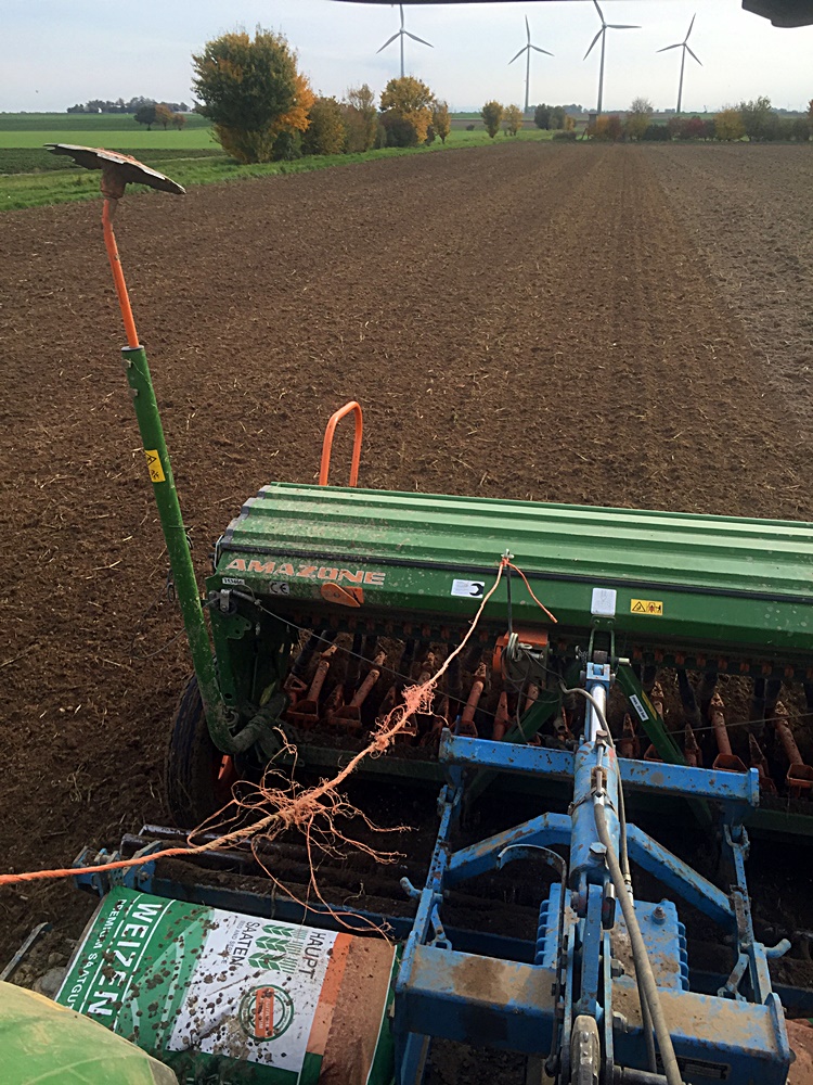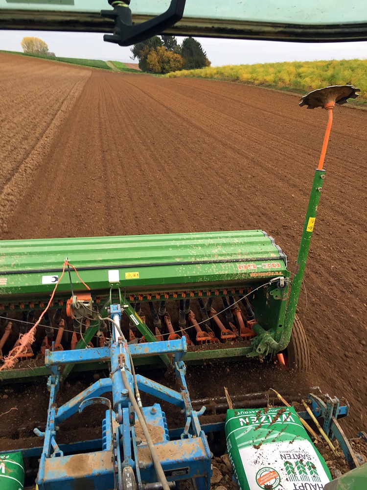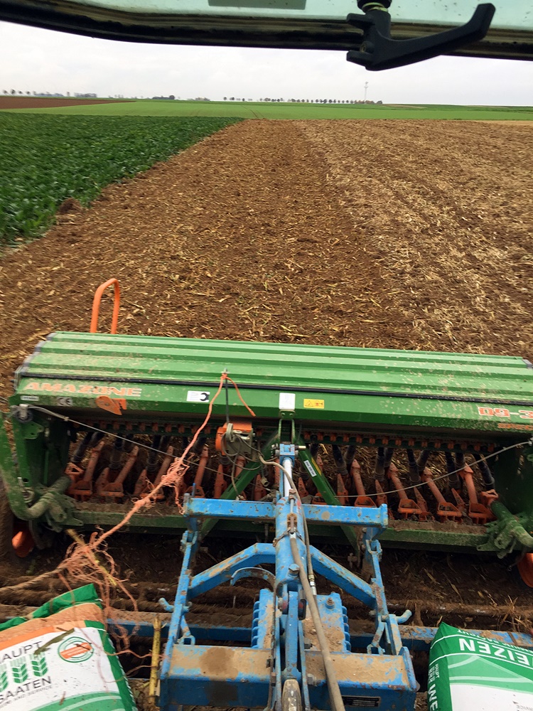 Am besten ist bei mir der Weizen nach Mais aufgelaufen, weil der Acker ziemlich schluffig ist und schon beim Grubbern richtig fein gekrümelt hat.