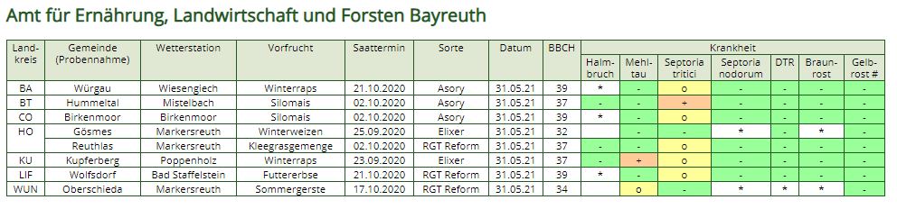 Hier noch ein paar Facts aus Bayern zur aktuellen Septoria Befallssituation: