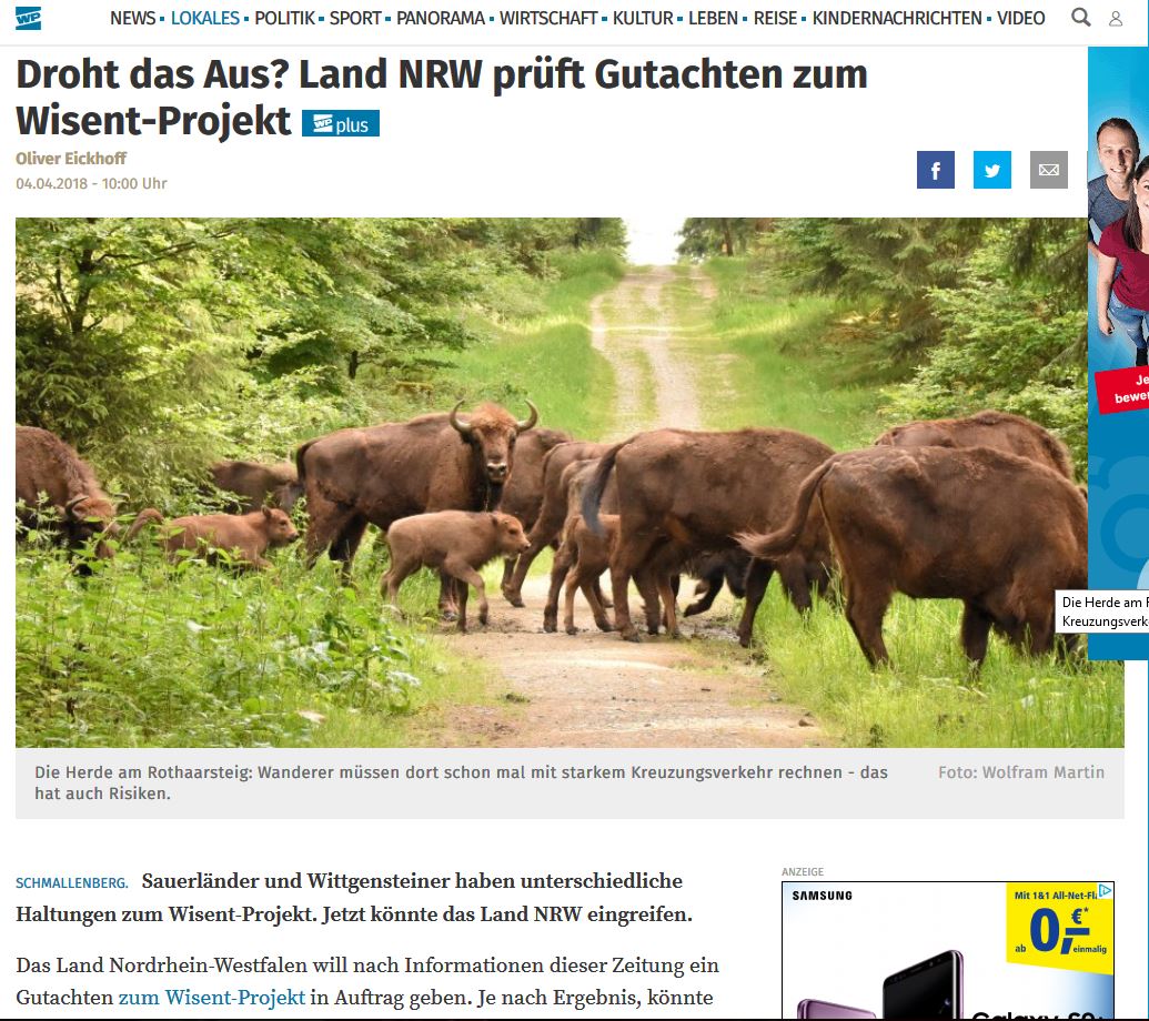 Westfalenpost: "Droht das Aus? Land NRW prüft Gutachten zum Wisent-Projekt"