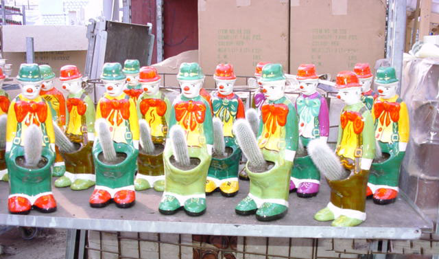 Kakteen, welche in den Clown-Töpfen schnell gedeihen konnten.