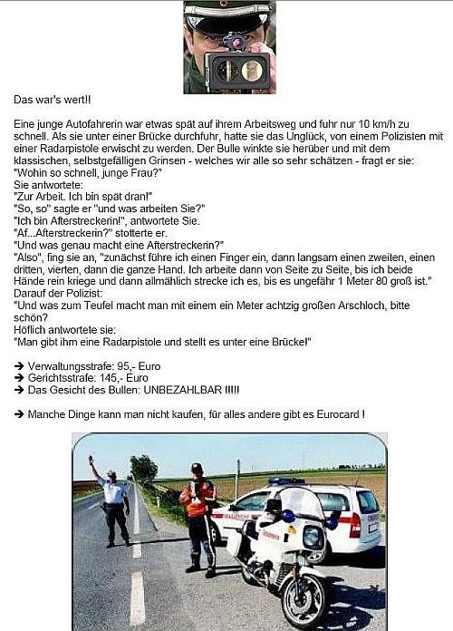 ok, hier habt wieder guten stoff gelieferrt, dann will ich mal noch einen zum besten geben.