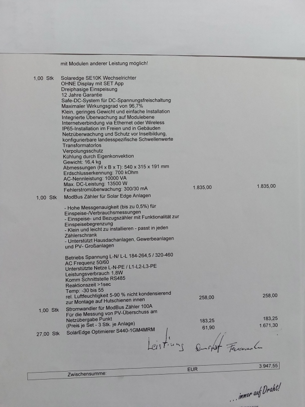 Dach ist südausrichtung mit 2 dachfenstern und 2 kaminen aber mit genug abstand bringt man genau 52 module hin und wir kommen auf gute 20kwp. Dazu noch einen 11 kw speicher