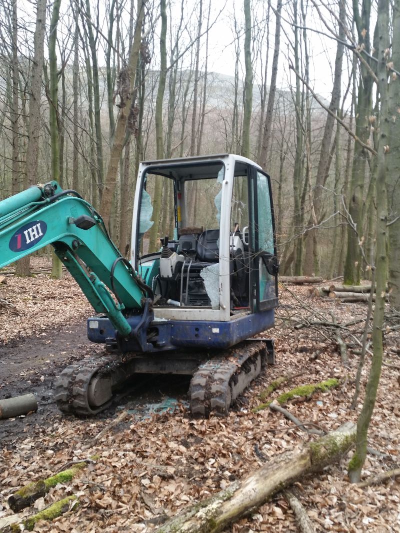 Ich war heute im Wald, nur mal sehen ob keiner ans Holz geht und musste feststellen, dass jemand meinen Bagger zerstört hat. Alle Scheiben kaputt aber auch Dieselleitungen, Luftfilter, Öldeckel usw. zerstört.